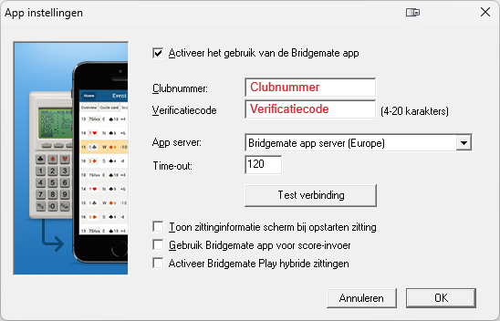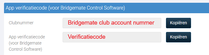 - Bridgemate-clubaccountnummer en verificatiecode